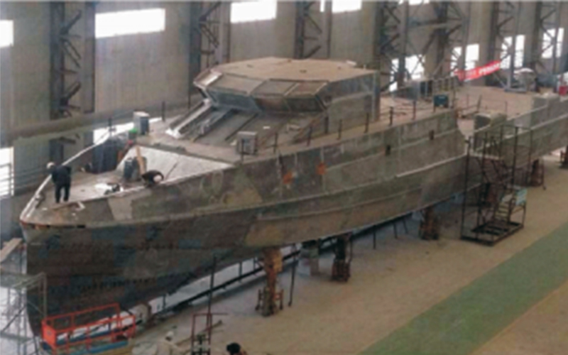 40米平臺工作船船體及上建材料;鋁合金總長:40米 型寬:8.2米 型深:3.65米 航速:27節(jié)主機:4x1350KW