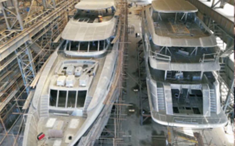 錦龍46米系列游艇船體及上建材料;鋁合金總長(zhǎng):46.48米 型寬:9.08米 型深:2.45米 排水量:290 噸
